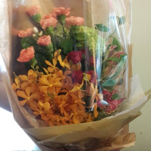 花材 粉大康 綠雪球 火焰白合 紅玫瑰 沙亞蘭花