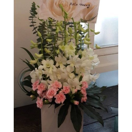 花材 白色石斛蘭 粉中康 尤加利 八角金盤