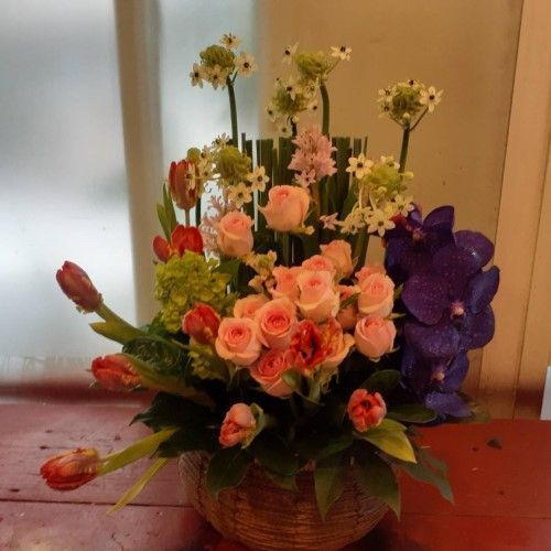花材 粉玫瑰 柏利恆 綠繡球 魔鬼玉金香 紫色萬代蘭 水濁葉
